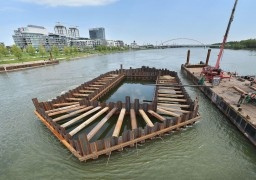Vytvorenie stavebných jám v Nosickej priehrade pre podpery mosta P3, P4 a P5