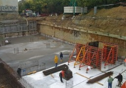 Technológie: koštrukčné podzemné steny, rozperný systém, odvodnenie stavebnej jamy, vŕtané pilóty
