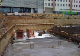 Technológie: koštrukčné podzemné steny, rozperný systém, odvodnenie stavebnej jamy, vŕtané pilóty